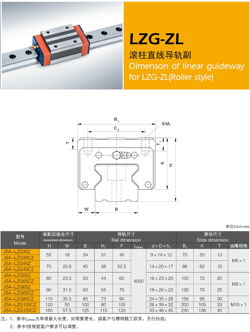 LZG型滚柱直线导轨副